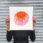 Hello little fluffy friend! Handmade screenprint in pink and orange. Limited edition, signed and numbered.