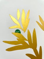 This enchanting golden plant has lured some curious little creatures to nestle among its shiny branches. Crafted with beautiful gold ink that sparkles as it catches the light.