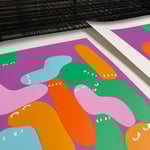 Squashy tessellating blob friends play a game of TETRIS. Handmade, 6-layer, limited edition screen print.
