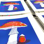 Silkscreen printing is a manual process in which layers of ink are applied to the paper by hand. Small marks or imperfections may occur as a result (but this also adds a little charm and uniqueness to each print).
